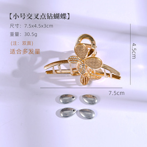 新款宋锦抓夹DIY底胚点钻合金鲨鱼夹带盖子凹槽饰品配件多款式