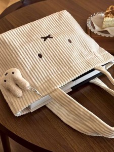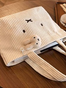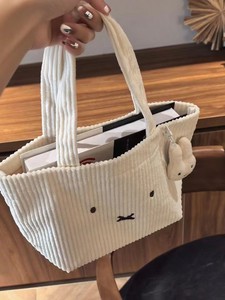 米菲兔灯芯绒刺绣手提包通勤新款百搭便携式大容量高颜值学生