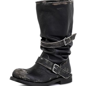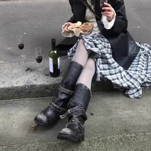 张元英同款皮带扣堆堆靴粗跟复古做旧中筒靴韩版靴子小众工装靴女