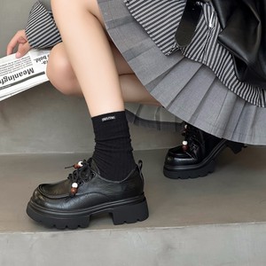 厚底乐福鞋女2025新款秋季英伦风时尚百搭休闲舒适软底系带小皮鞋