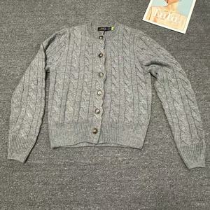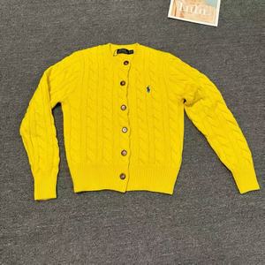 2025秋冬小马标麻花刺绣羊毛圆领简约针织开衫毛衣外套跨境代发
