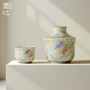 墨己汝窑温酒器粉彩缠枝莲陶瓷温酒壶家用烫酒热酒壶黄酒清酒具