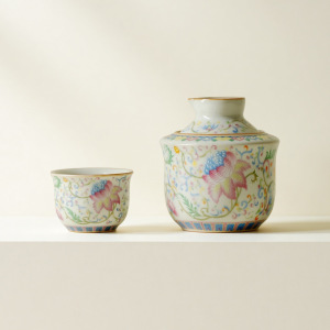 汝窑-粉彩缠枝莲-温酒器一壶一杯(二两用)
