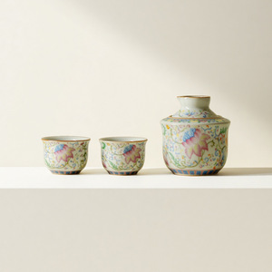 汝窑-粉彩缠枝莲-温酒器一壶两杯(二两用)