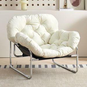 单人沙发椅北欧风客厅阳台懒人沙发中古风纯色休闲椅午休铁艺沙发