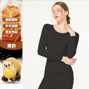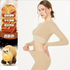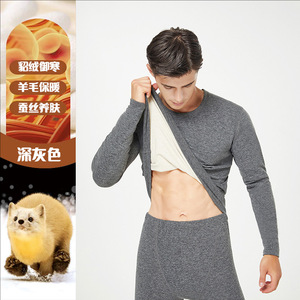 秋冬貂绒桑蚕丝发热加绒加厚抗菌保暖内衣套装男女士情侣秋衣秋裤