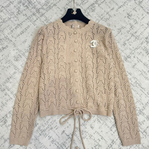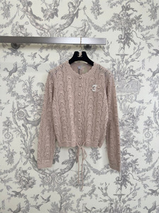 25秋季新款南油高定Cha经典圆领单排扣抽绳小香风镂空针织开衫