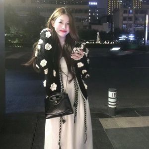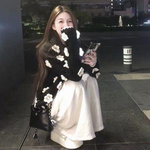 设计感镂空立体花朵针织开衫女春秋新款小众宽松别致毛衣外套上衣