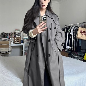 灰色风衣外套女中长款2025新款早春秋韩系小个子高级感英伦风大衣