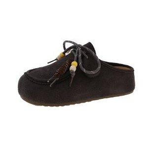 自留版~勃肯鞋女小众复古袋鼠鞋一脚蹬流苏绒面厚底不累脚包头鞋