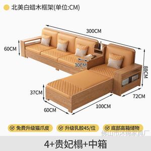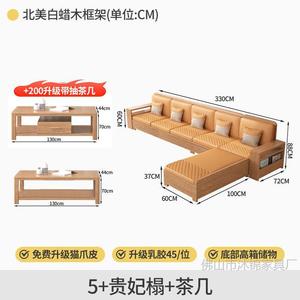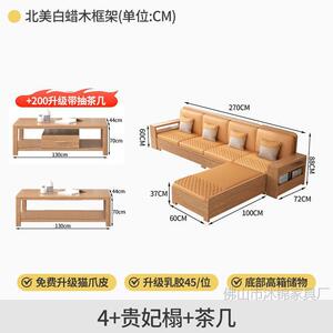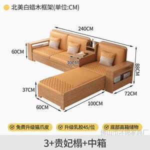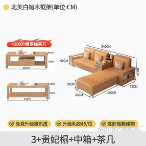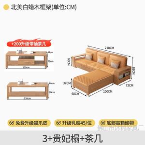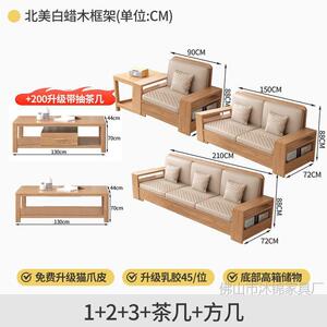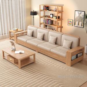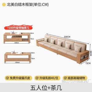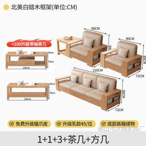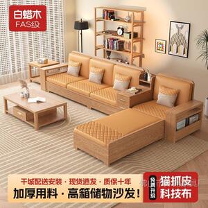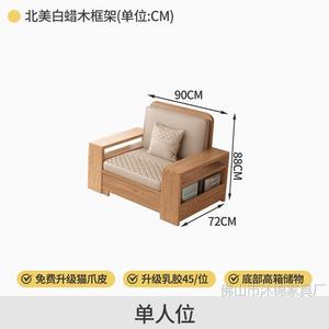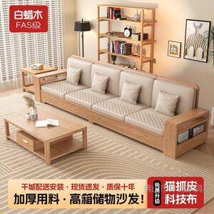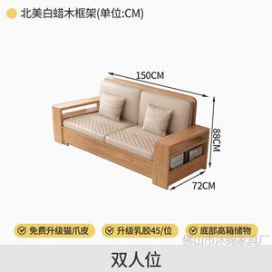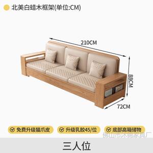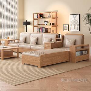 网红家具客厅冬夏两用储物直排沙发白蜡木实木沙发现代简约小户型