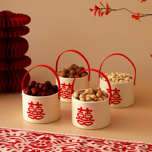 早生贵子床上摆件装饰婚房布置提篮压床干果红色喜庆婚庆用品大全