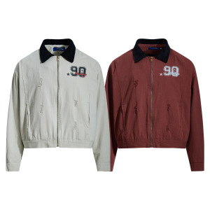 美式复古撞色拼接字母印花翻领夹克男女秋冬新款潮流情侣款外套