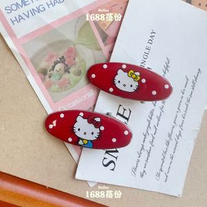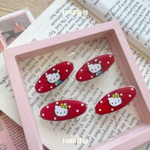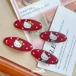 卡通kitty猫波点椭圆发夹时尚复古百搭刘海侧边夹甜美可爱碎发夹