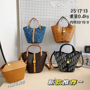 跨境2025潮流托特包欧美复古风大容量街头百搭子母包拼接复古花纹