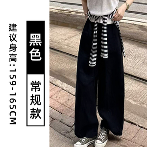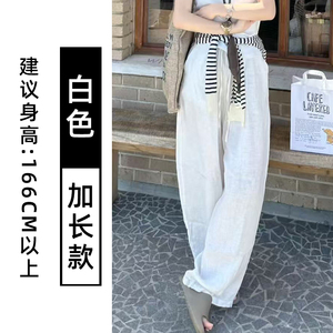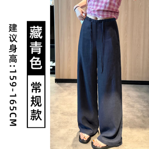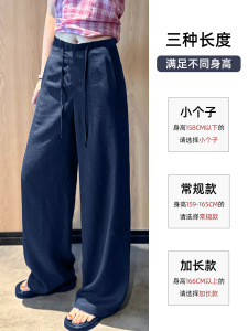藏青色棉麻阔腿裤女夏季2025新款松弛感老钱风直筒裤亚麻休闲裤子