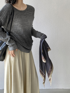 江左 彩虹渐变针织衫美式街头变色喇叭长袖甜酷宽松慵懒毛衣 0679