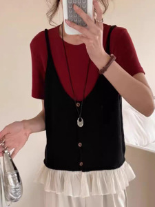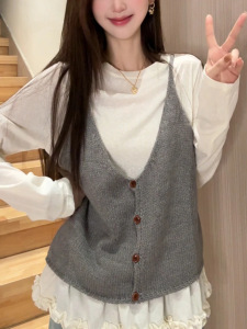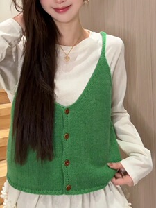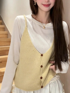 休闲百搭宽松慵懒感针织吊带背心女早秋时尚减龄小众设计别致上衣