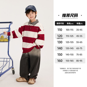 童话记忆秋季新款韩版宽松卫衣男童中大童棉感条纹长袖卫衣假两件