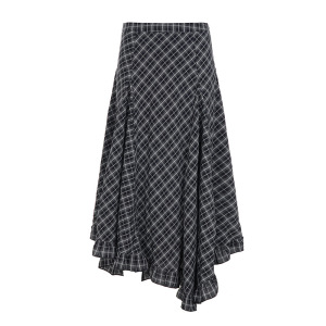 外贸美式复古学院风撞色格纹不规则下摆半身裙少女减龄基础款长裙