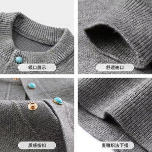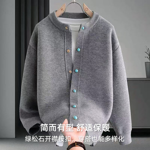 登捷男装开衫针织衫毛衣男冬季新款绿松石纽扣休闲宽松新中式外套