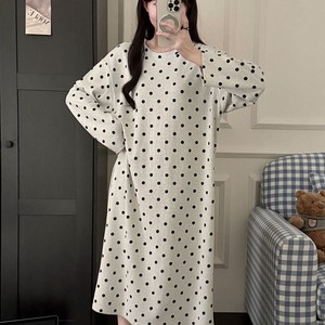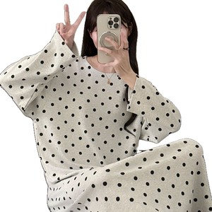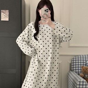 满印波点睡衣女春秋款纯棉简约风长袖睡裙秋冬季可外穿2025家居服