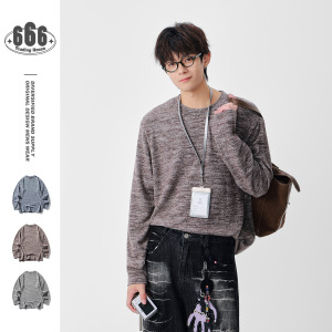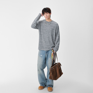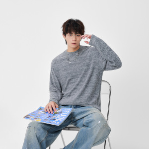 FLYCLAN春秋季新款基础美式潮流宽松圆领卫衣男长袖T恤上衣Q8912