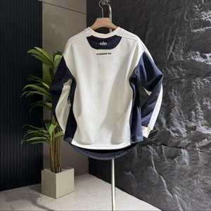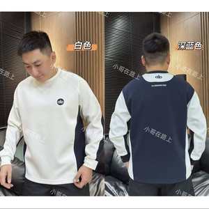 撞色新款设计拼接圆领日系卫衣潮牌美式男女宽松复古长袖情侣上衣
