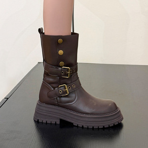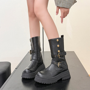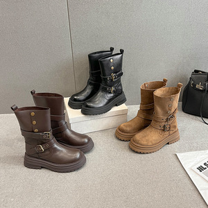 靴子2025新款短靴马丁靴女式皮靴厚底切尔西骑士靴秋季西部牛仔靴