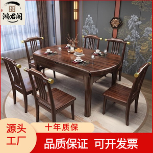 新中式乌金木实木餐桌椅组合客厅家用小户型方圆两用伸缩折叠饭桌