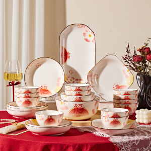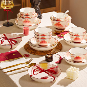 家用新中式高颜值餐具套装中国风碗碟套装新居乔迁送礼新家礼物