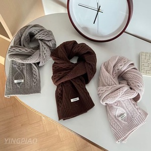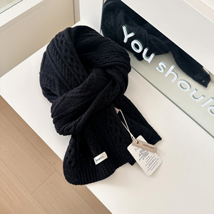 100%纯羊毛麻花围巾纯色女士冬季保暖披肩百搭氛围高级感羊毛围脖