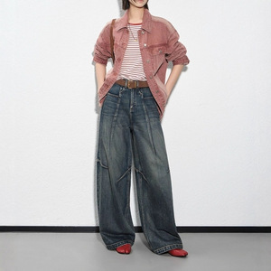 美洋1MEIYANG 1蓝箭牛仔裤 先锋解构趣味拼接弯刀裤