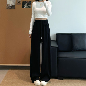 美式直筒香蕉裤女款2025年春秋季穿搭高腰宽松加绒运动休闲卫裤子