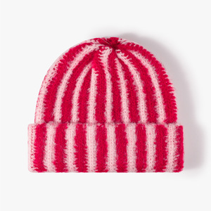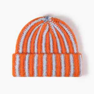 韩系撞色条纹双层针织帽加厚秋冬百搭时尚潮ins卷边毛线帽搭配女