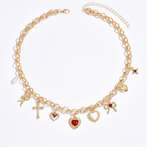 十字架吊坠批发欧美跨境时尚夸张爱心项链女甜美蝴蝶结仿珍珠颈链