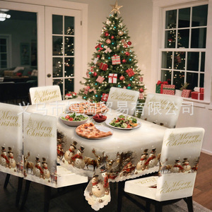 新款圣诞跨境方圆桌布和椅套家用餐厅酒店节日装饰台布欧式桌布