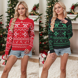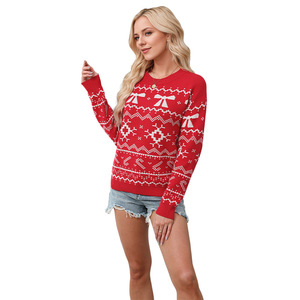 跨境亚马逊热卖2025秋冬新款圣诞装雪花针织衫欧美女装套头毛衣