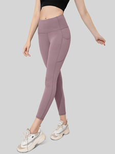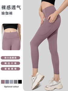 双侧口袋高腰提臀翘臀运动女收腹显瘦弹力紧身瑜伽健身长裤九分裤