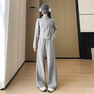 灰色运动套装女秋季2025新款羊绒卫衣外套休闲裤子两件套慵懒风