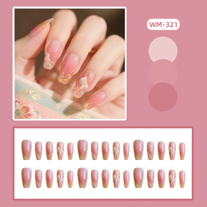 WM-321珐琅花卉假指甲短T跨境国风温柔腮红花朵气质穿戴甲片批发