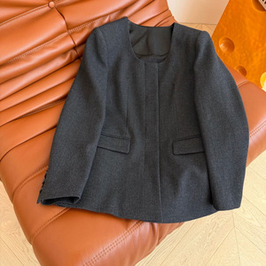 2025秋季新款简约时尚百搭U领单排扣设计纯色西装外套批发