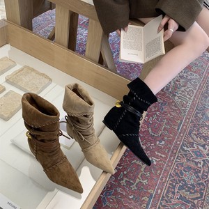 内增高尖头绒面瘦瘦中筒骑士靴女靴子2025秋冬季西部牛仔堆堆长靴