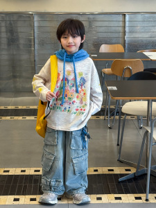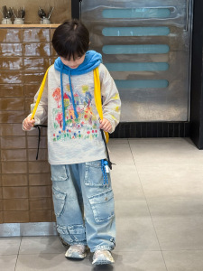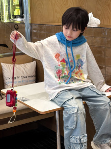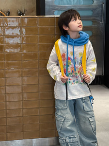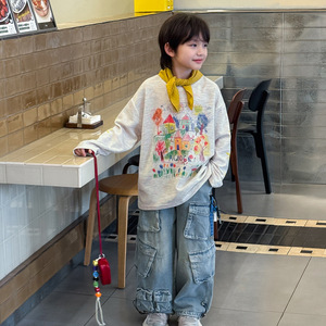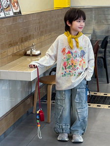 顽兔2025男童秋款时尚彩绘印花宝宝上衣洋气彩色面料宽松儿童T恤