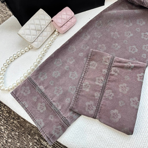 2025早秋新款南油cha时髦文艺气质百搭显瘦花朵直筒长裤牛仔裤女