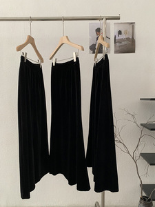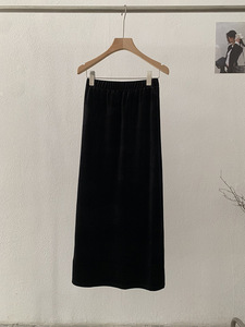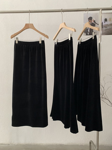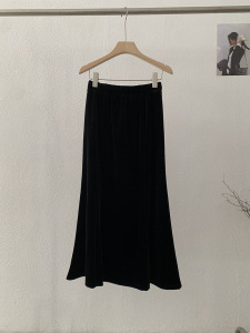 欧玛莱 丝绒半身裙女黑色中长裙秋季高腰显瘦垂感包臀鱼尾裙 4662