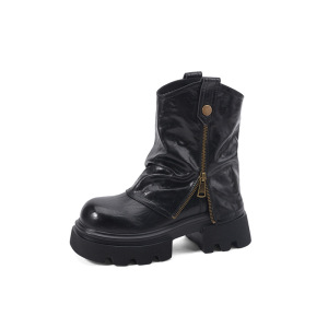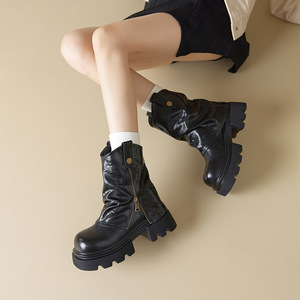 马丁靴女厚底短靴2025年春秋新款短筒复古棕色堆堆靴西部靴裤管靴