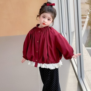 女童立领花边外套春秋款2025新款儿童韩版时尚小女孩洋气夹克上衣