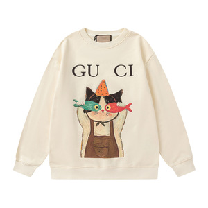 南油高货GU家古家25FW新款可爱猫猫小鱼手绘油画印花男女宽松卫衣