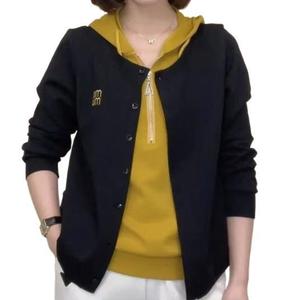 春秋新款时尚女装假两件连帽卫衣女士洋气休闲妈妈装长袖开衫上衣